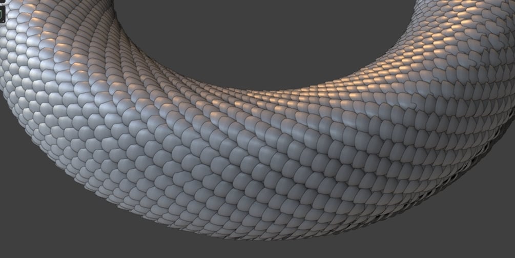 The meshes also have 2 generated UVs. One with the projection of the surface UV and another one for each individual scale.
