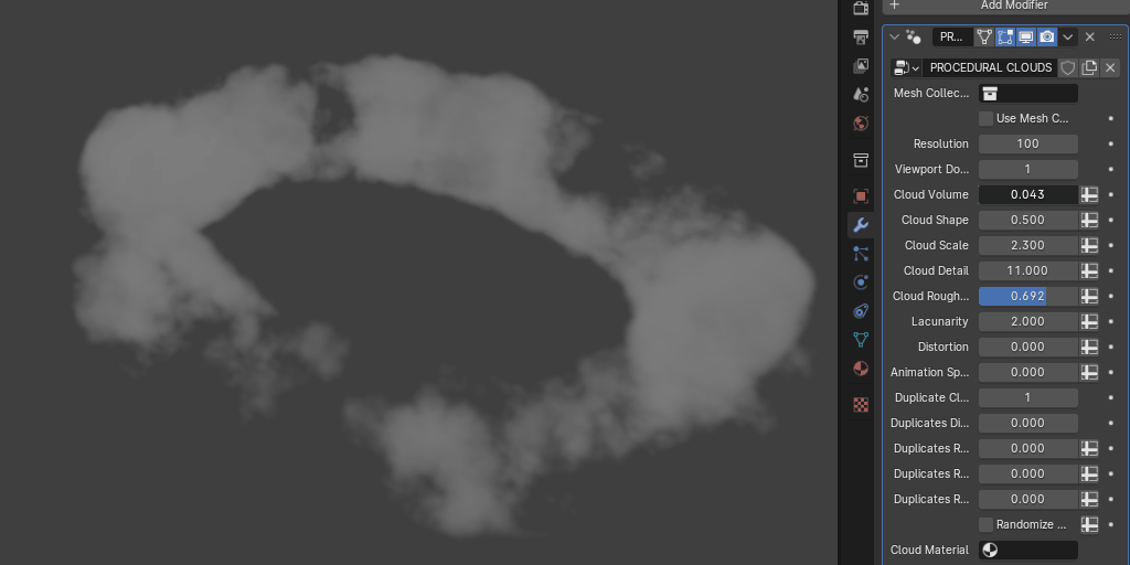 This tool also allows you to create randomized duplicates of the generated clouds, using the power of instances in Blender. With this feature, you can generate an insane amount of clouds without using too much memory.